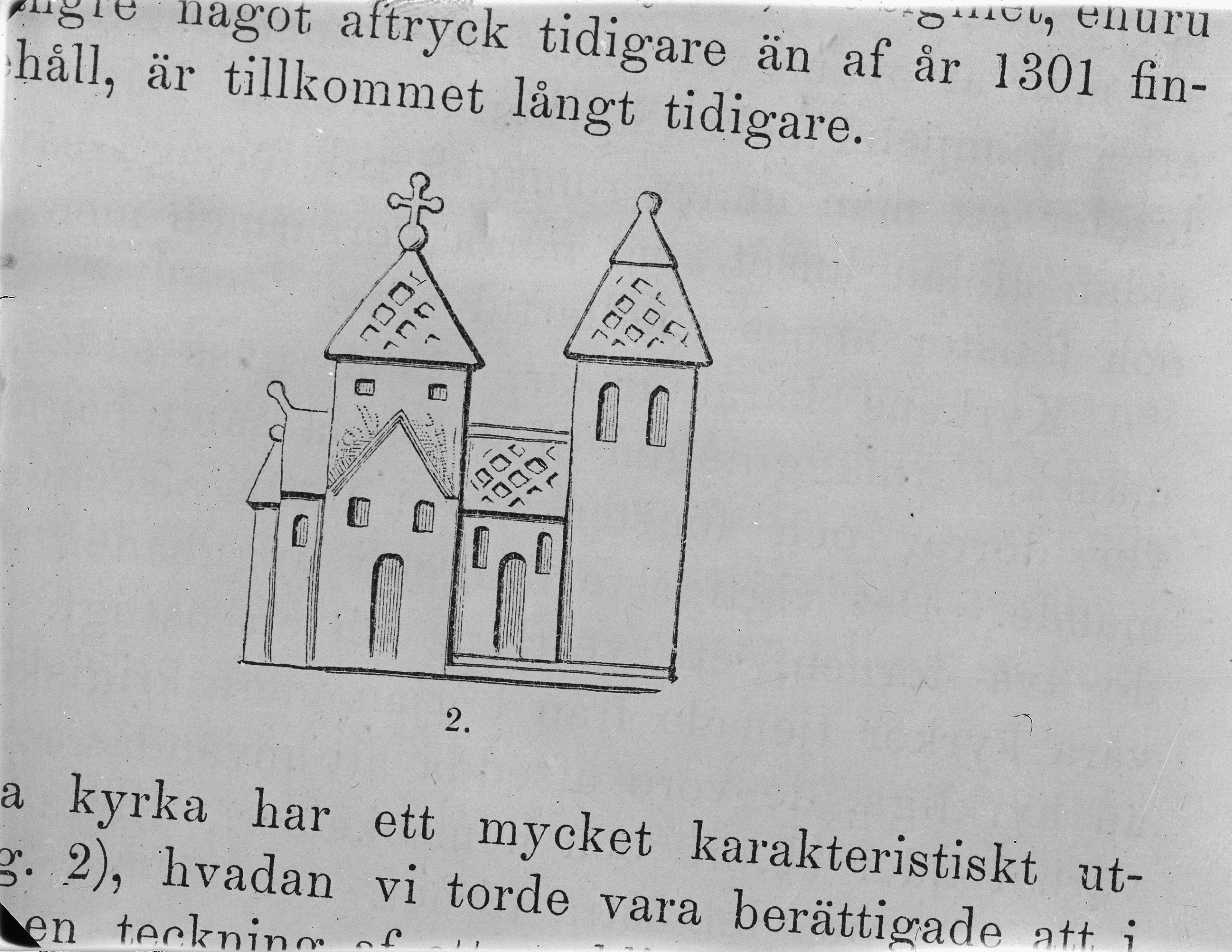 Kyrkan från väster. Foto efter avritning av sigill.