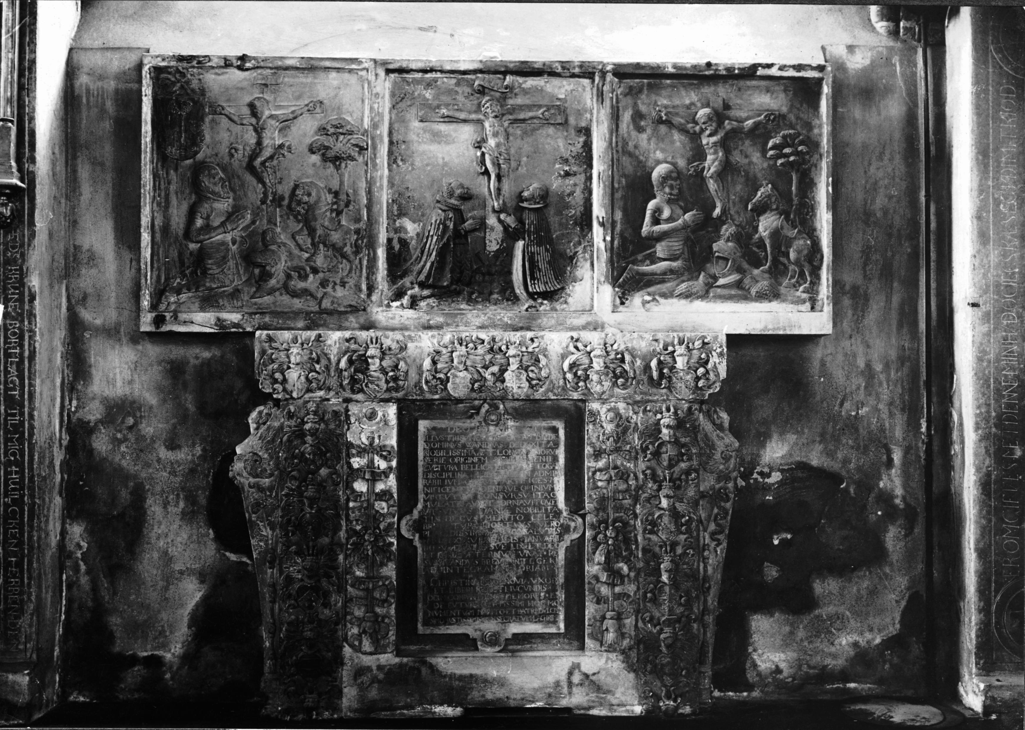 Grupp av epitafiedelar i nordvästra koromgången.