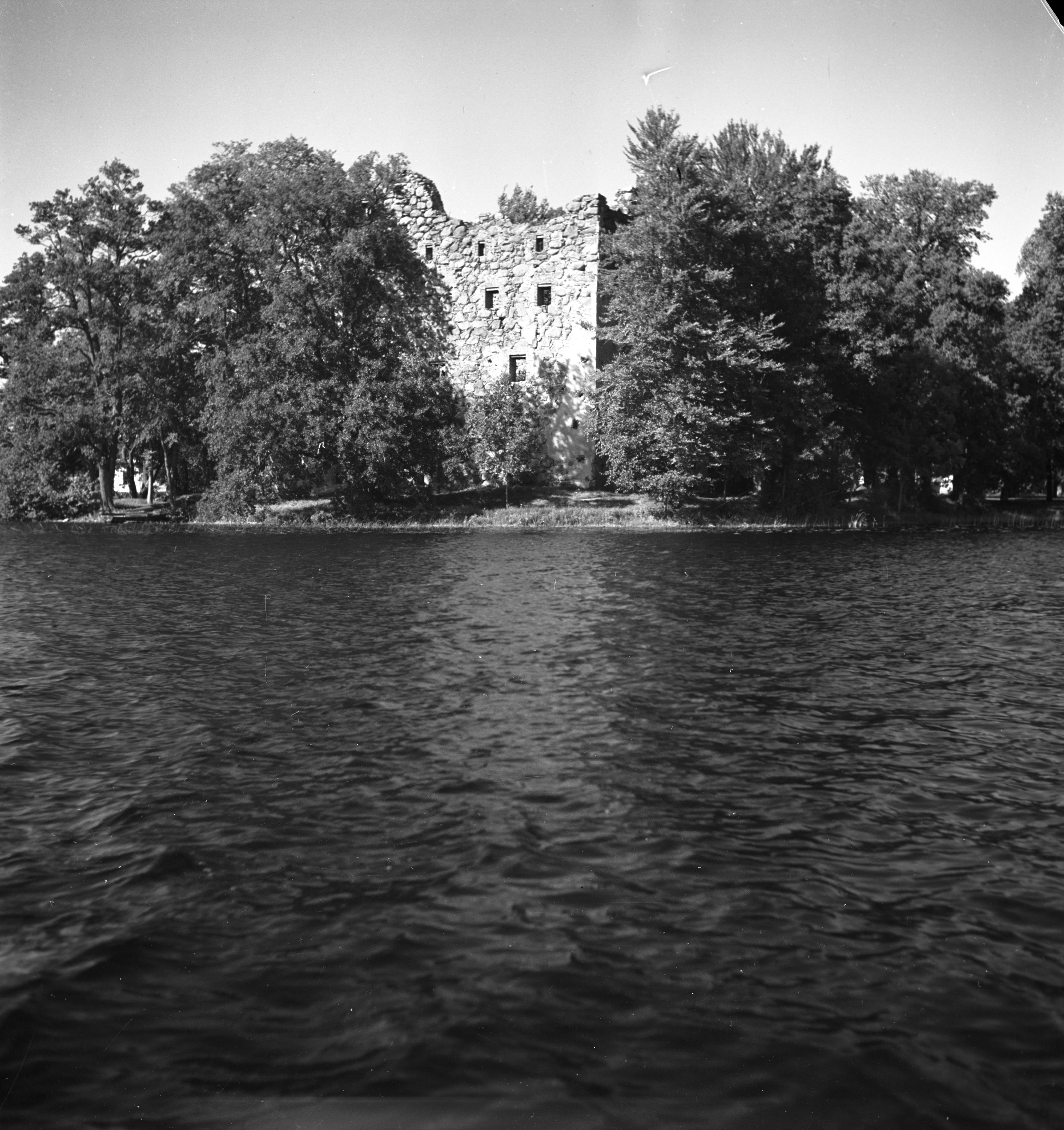 Bergkvarasjön och ruinen. Bilden tagen på 1940-talet.