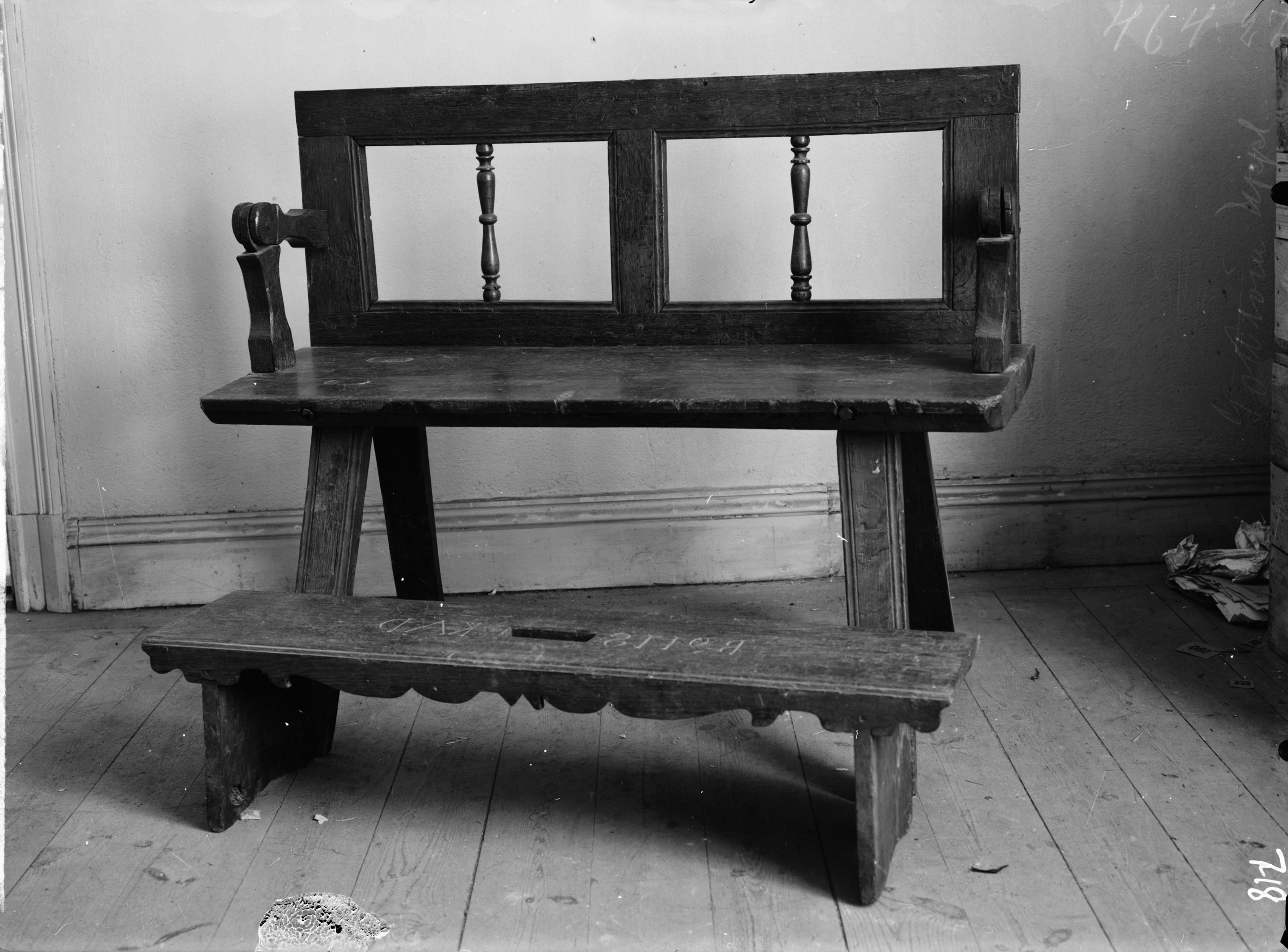 Brudstol, ek, omålad, 1600-tal.