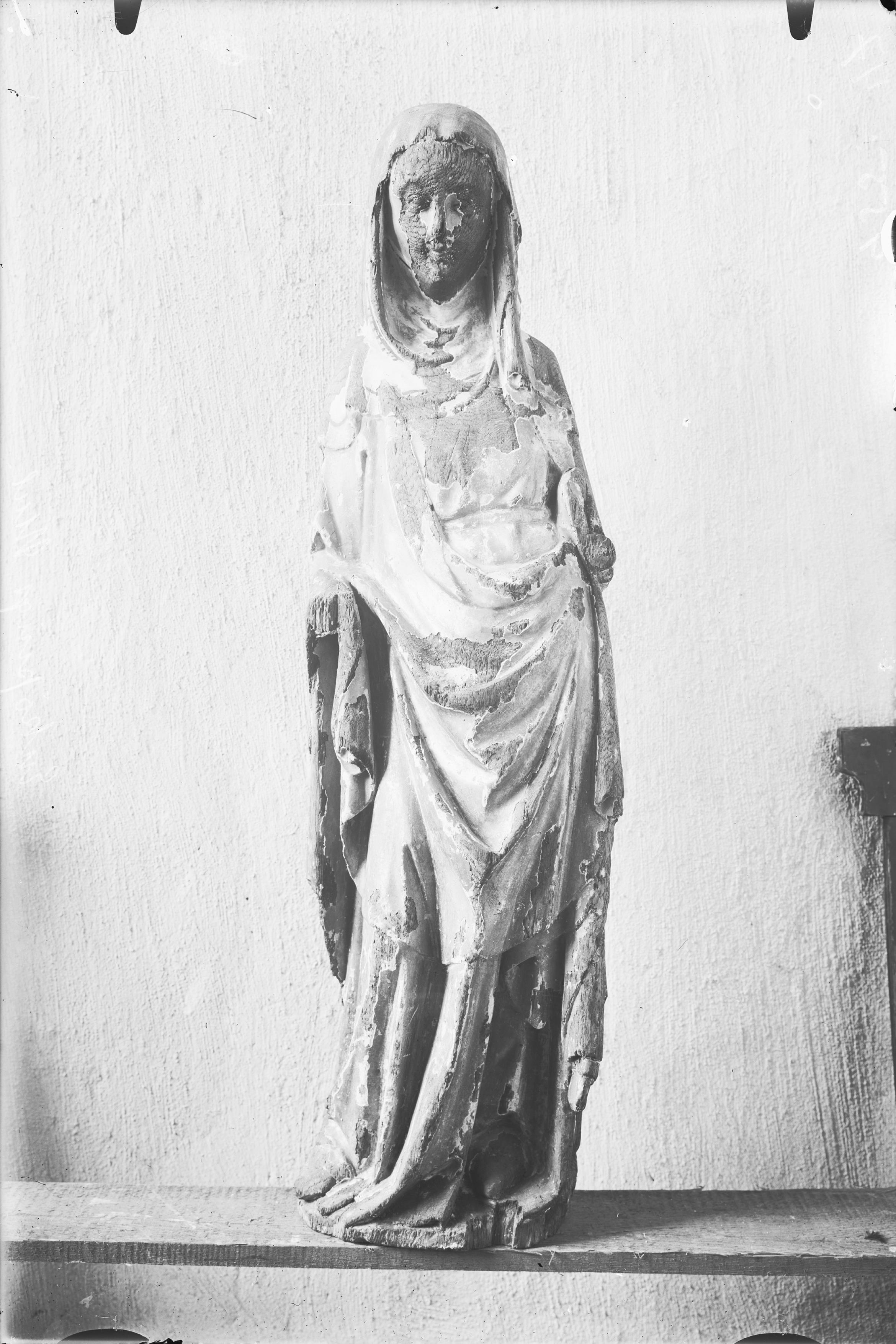 Skulptur, trä, kvinnligt helgon, 1300-talets förra hälft.