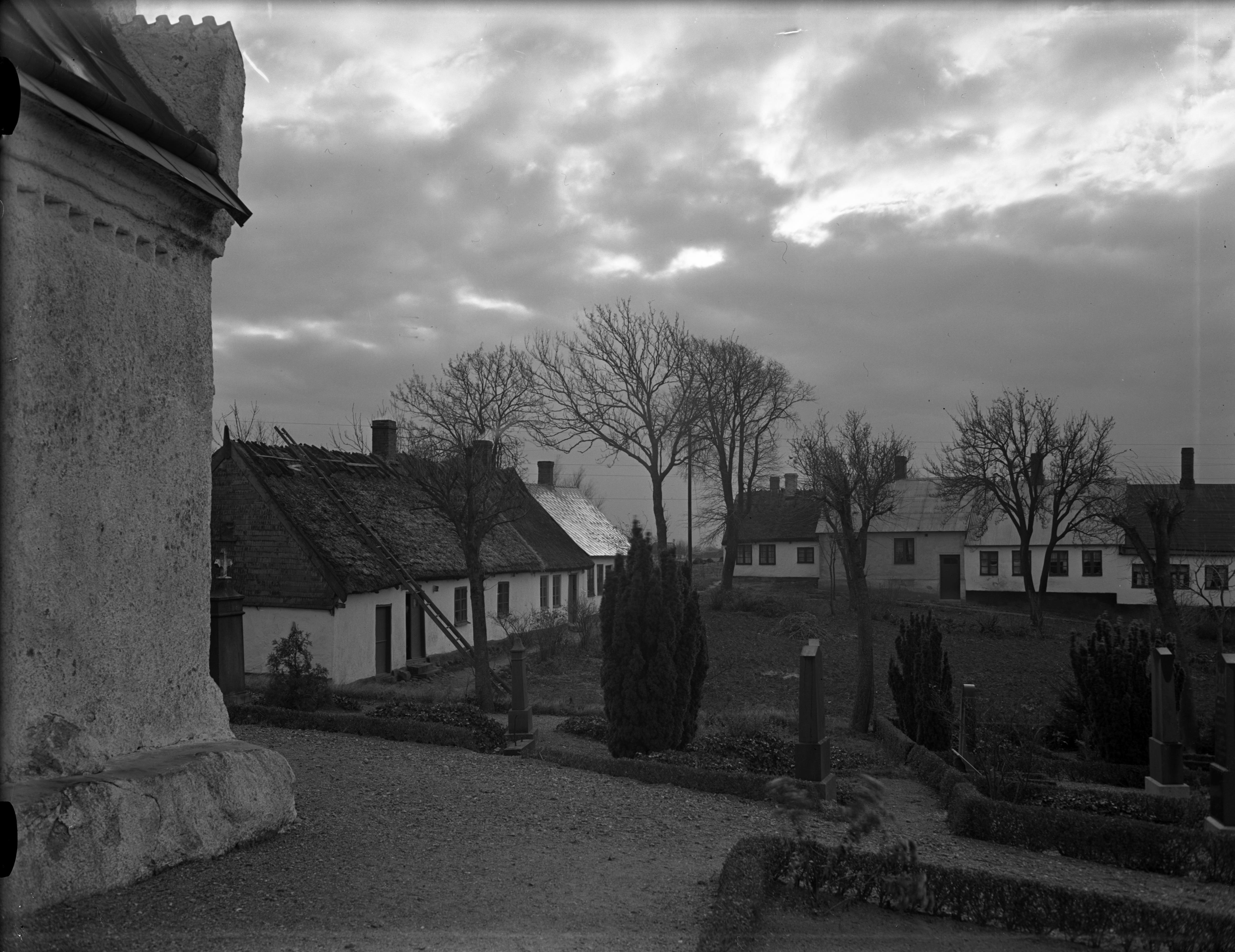 Bostadshus vid kyrkan. Bilden tagen på 1940-talet.