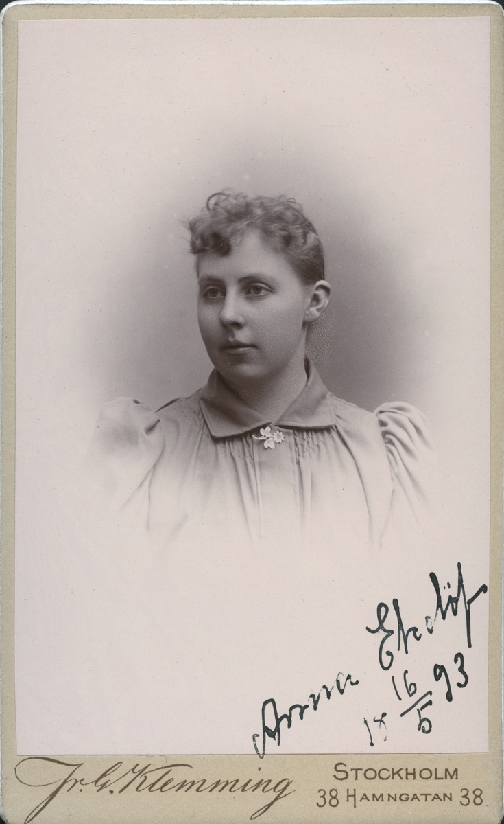 Kvinnoporträtt. Anna Ekelöf, 16/5 1893.