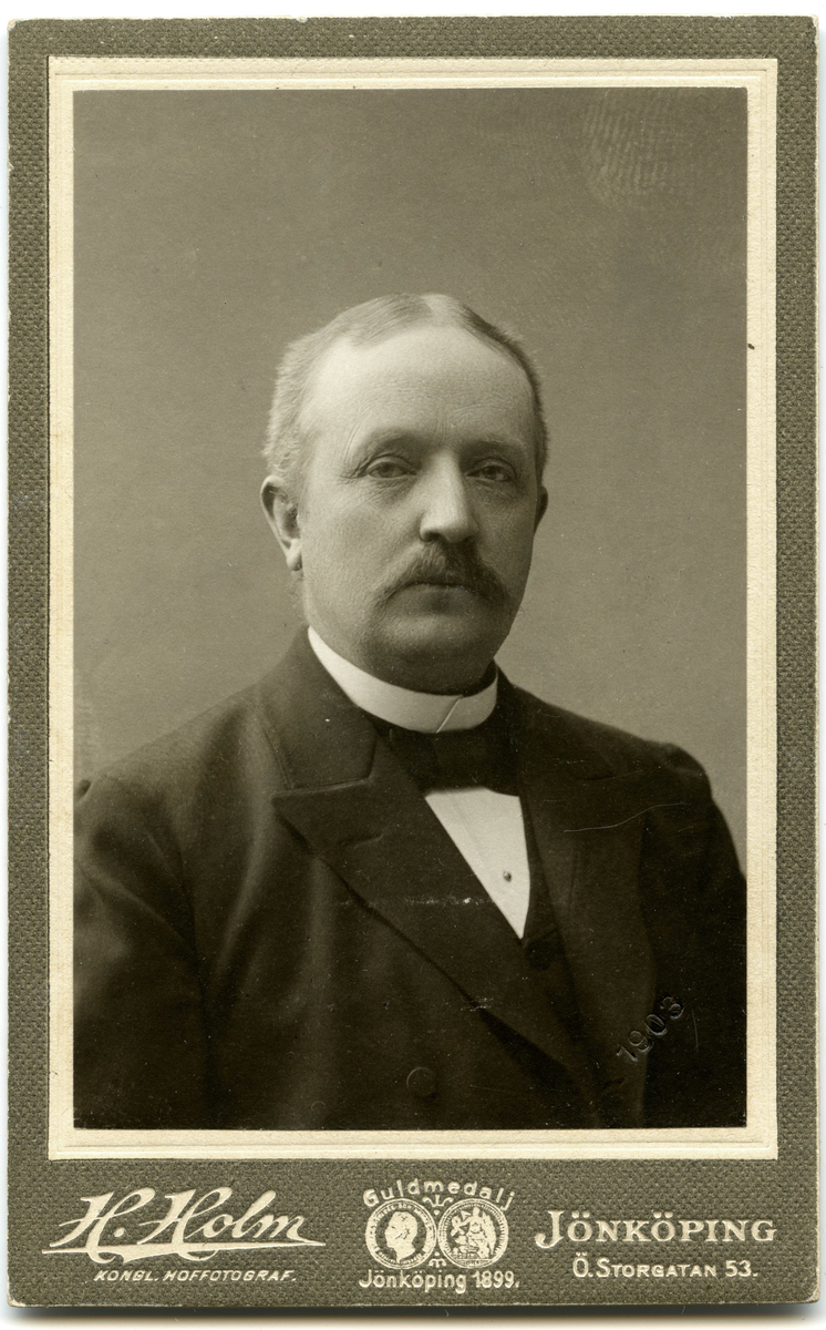 Porträtt på Kamrer Oscar Millqvist, Jönköping. Född år 1857 och död år 1932.