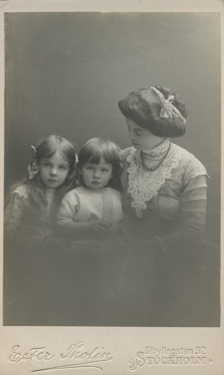 Titel: Porträtt av Gerda Hallgren, Ingegerd o Lars, julen 1909.