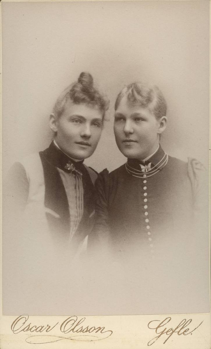Porträtt av Maria o. Anna Pettersson, sommaren 1890 (enligt text baksida kort och i album).