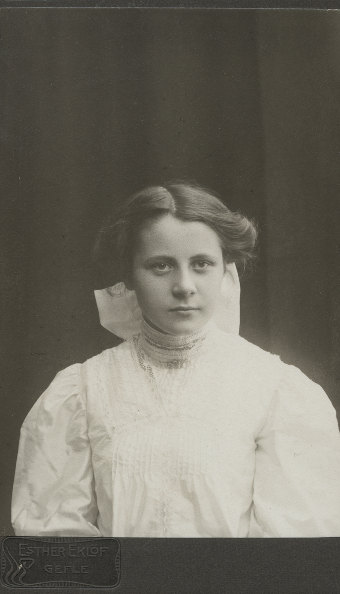 Titel: Porträtt av Stina Elofsson, våren 1908.