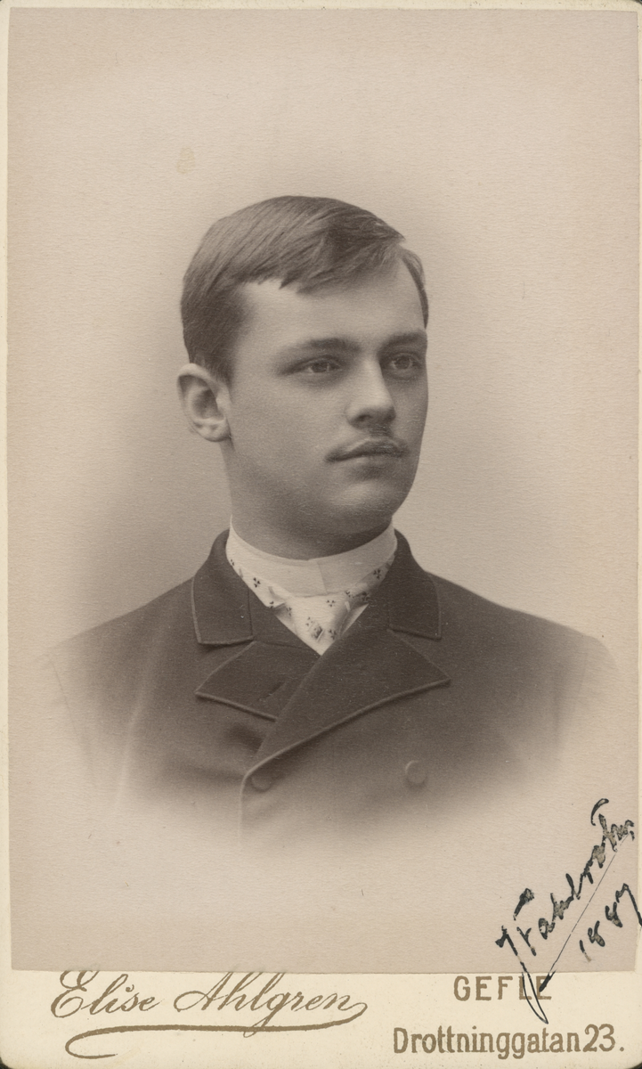 Titel: Porträtt av J. Fahlroth 1887 (enligt text framsida kort).