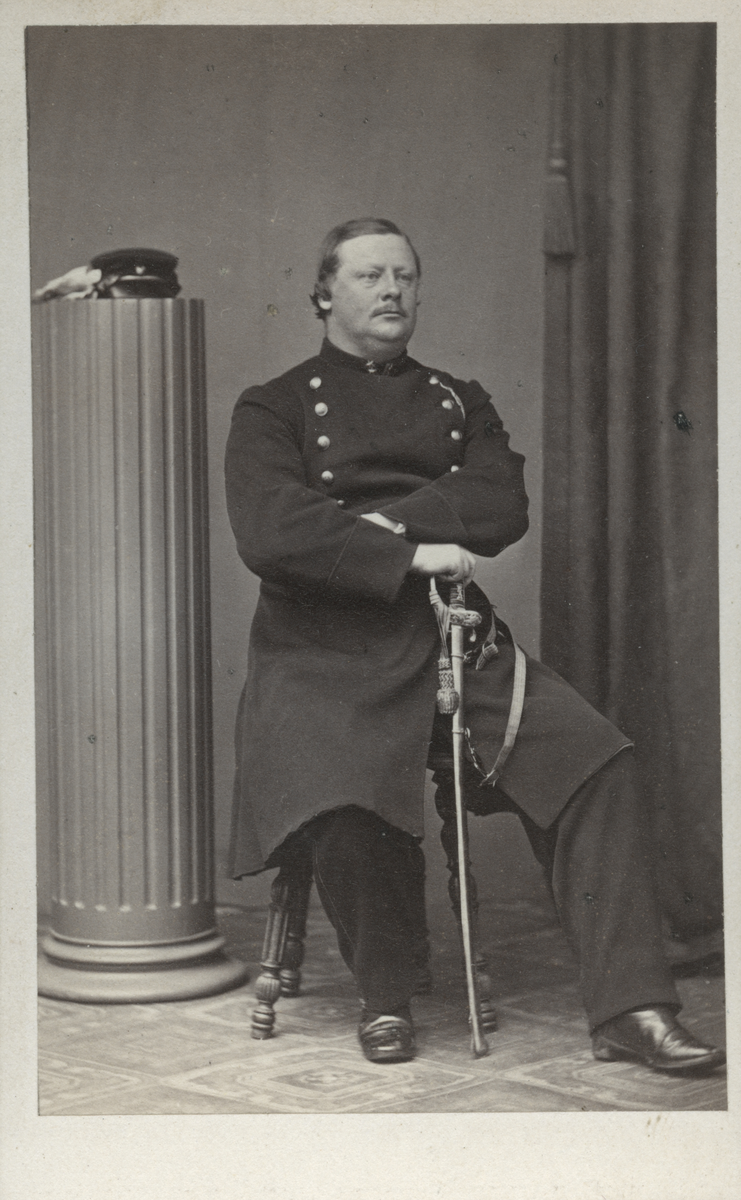 Titel: Porträtt av Baron Michael Christer Carl d´Albédyhll Elfsborgs Regemente Löjtnant (enligt text baksida kort).