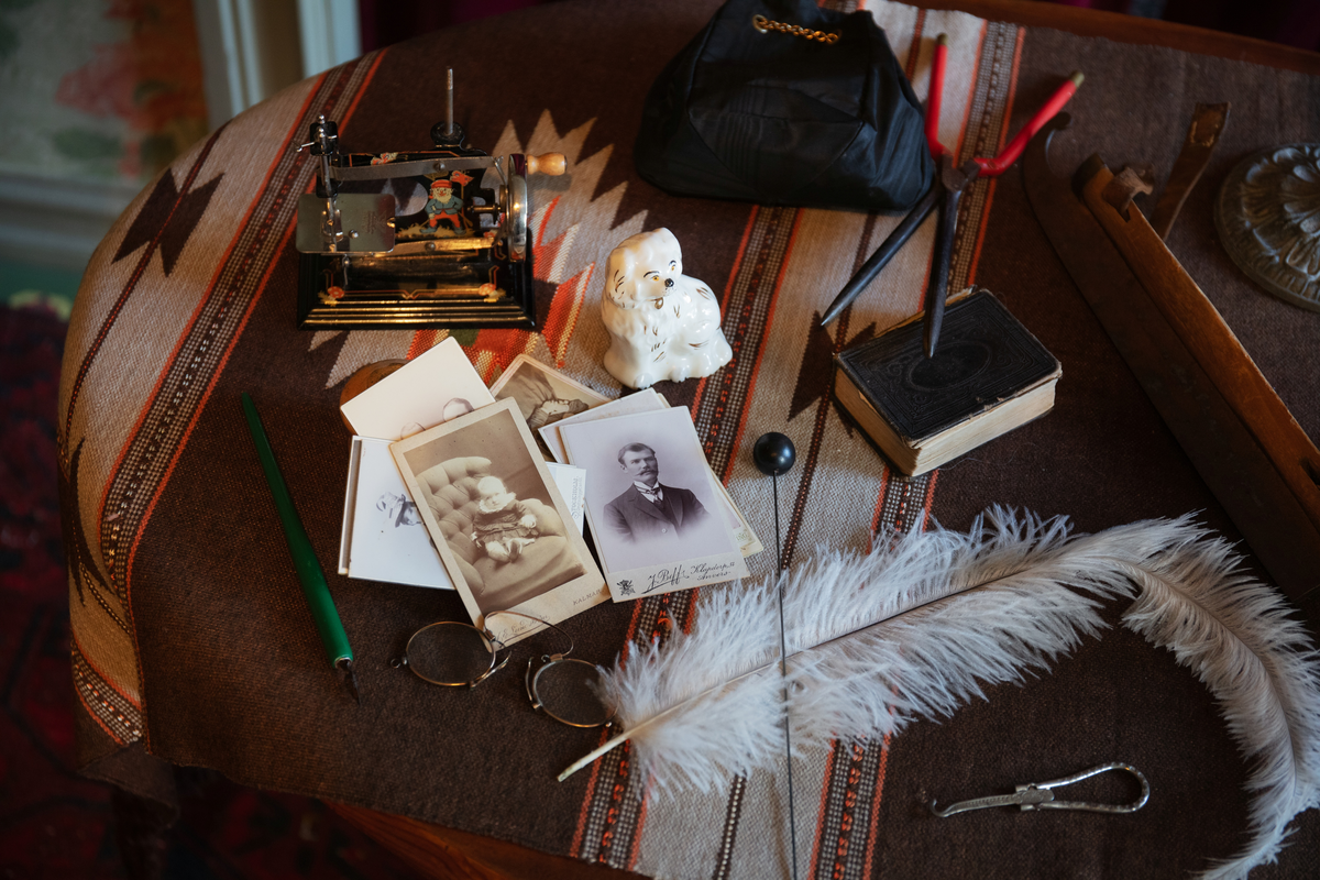 Vänersborgs museum. Museipedagog Greta Åberg har dukat upp bord med föremål inför skolvisning