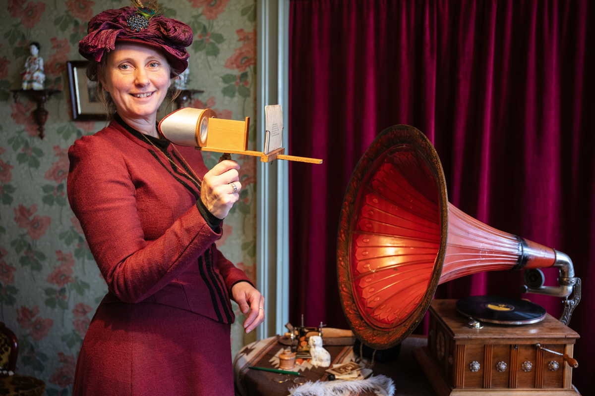 Vänersborgs museum. Museipedagog Greta Åberg har dukat upp bord med föremål inför skolvisning