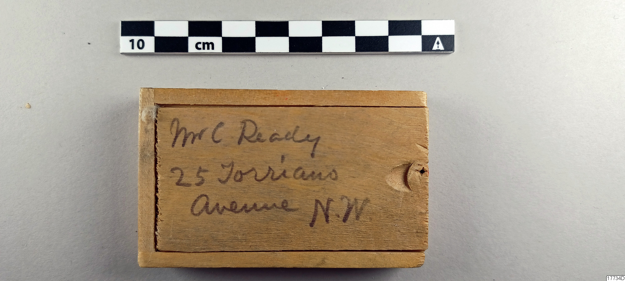 Dokumentation av kopior av skarabéer från Jeriko (Jericho) som legat i en ask. Bilden togs i samband med samlingsbesök.