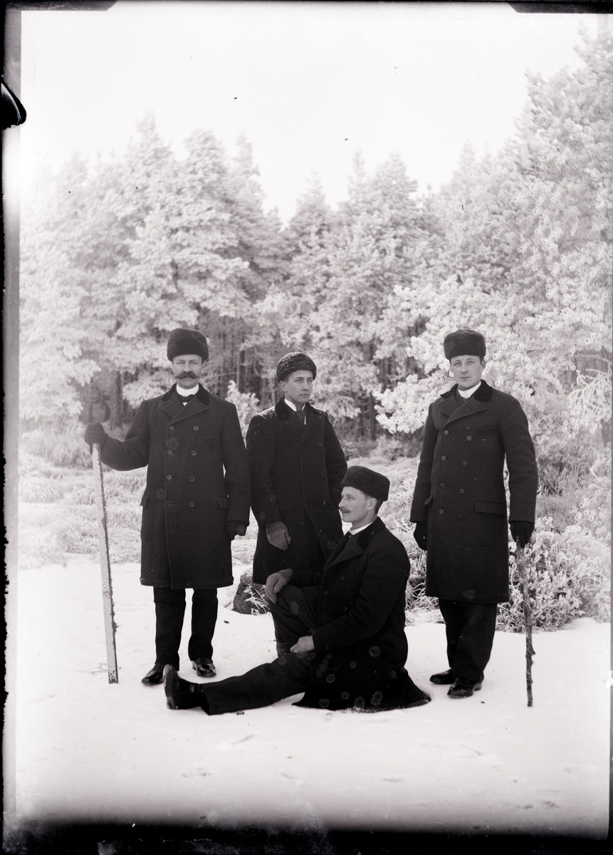 Nårunga. Till vänster Fridolf Benjaminsson. Sittande Oskar Benjaminsson. Övriga okända.