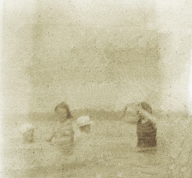 Fyra kvinnor i varierande ålder badar i en sjö.