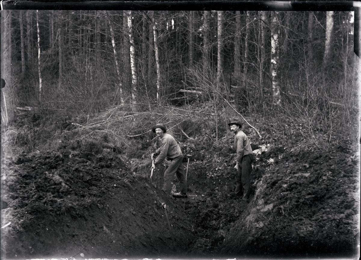 Nårunga. Algot Leandersson och Gottfrid Benjaminsson gräver kanal