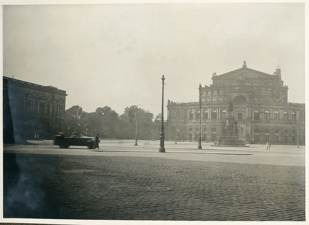 Vy över Theaterplatz, med operahuset i bakgrunden.