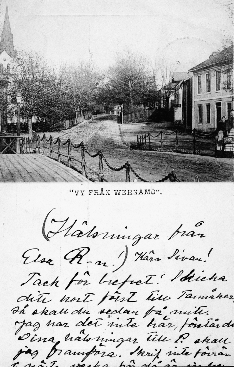 Bref kort till Fröken Sivan Krook i Skövde tidigt 1900-tal. Motiv från Värnamo.