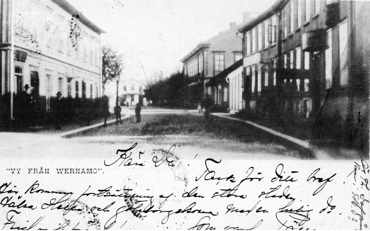 Bref-kort till Fröken Elesif Krook i Skövde på tidigt 1900-tal. Motiv från Värnamo.