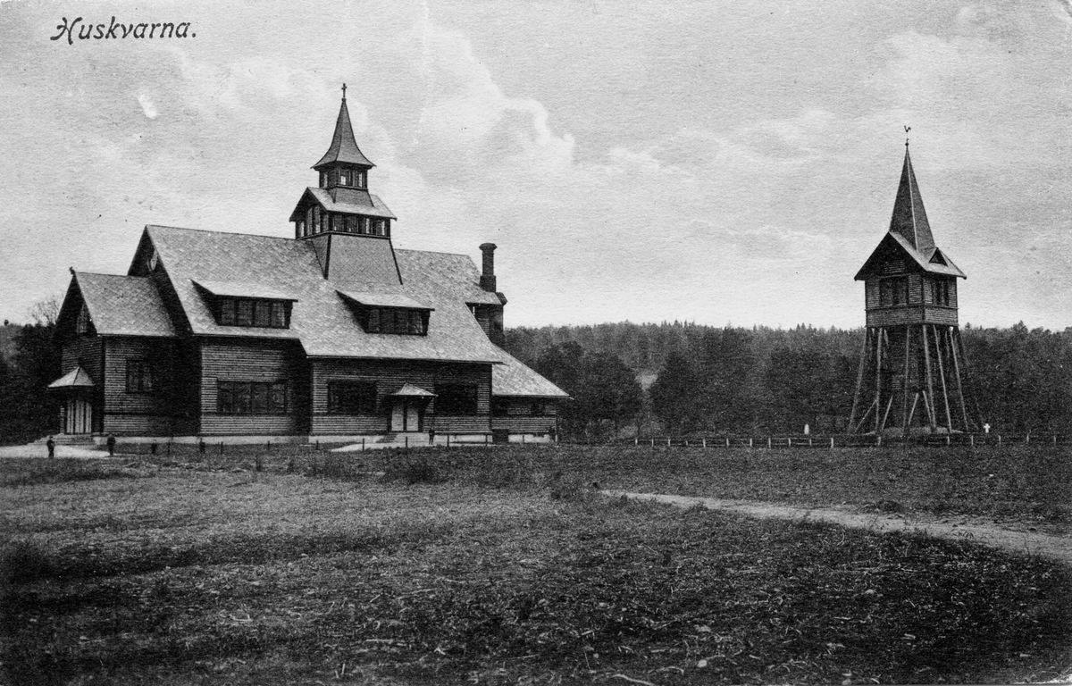 Kyrkan i Huskvarna. Vykort skrivet 1912-07-08 och skickat till Göteborg.