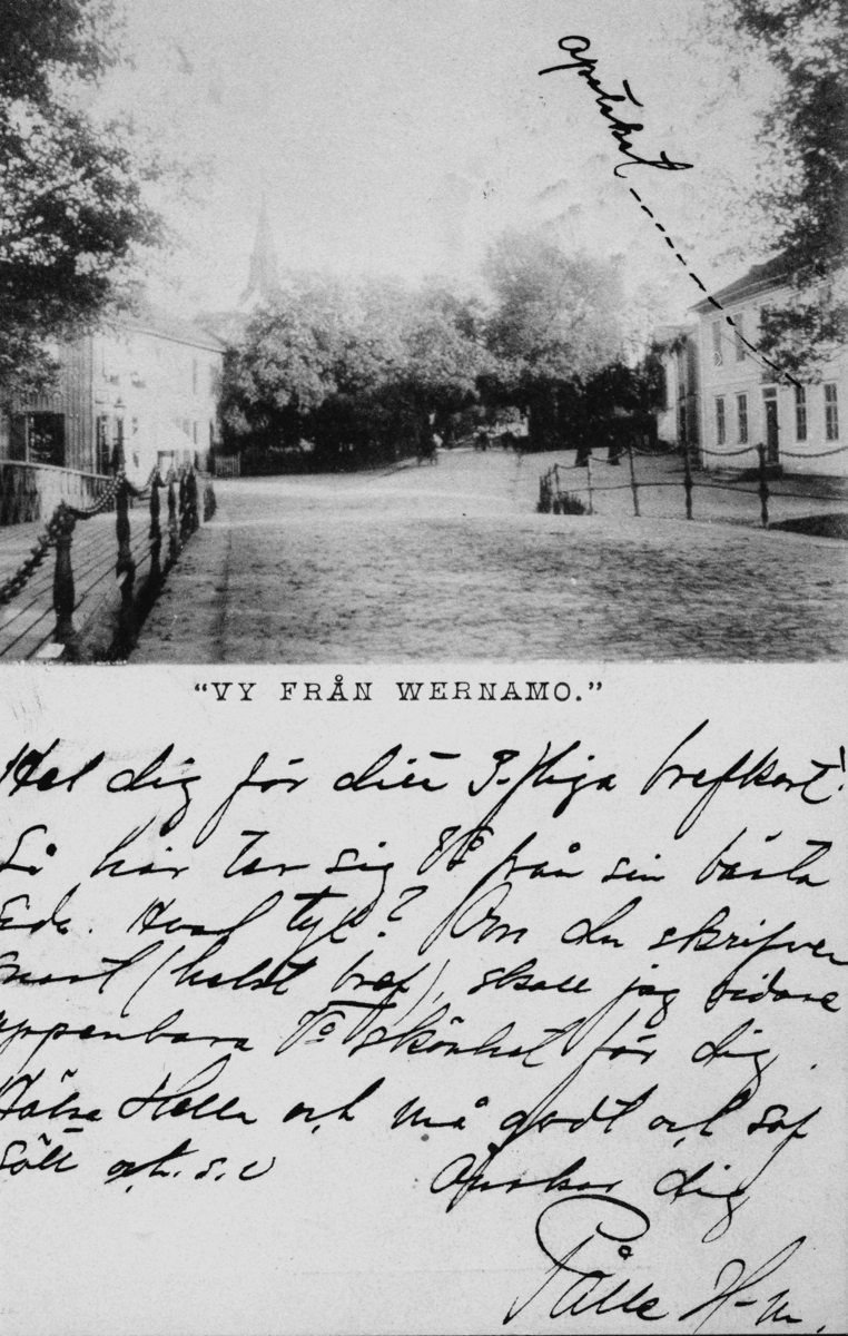 Bref-kort till Fröken Sivan Krook i Skövde, tidigt 1900-tal. Motiv från Värnamo.