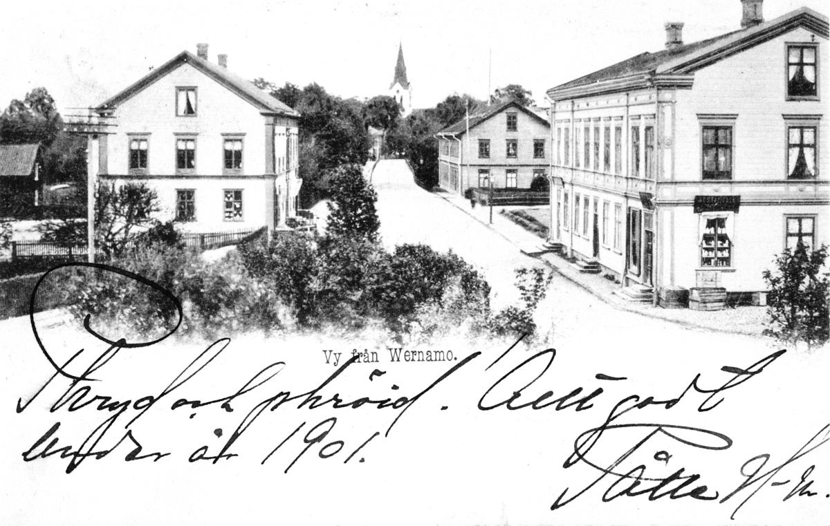 Bref-kort till Fröken Sivan Krook i Skövde på tidigt 1900-tal. Motiv från Värnamo.