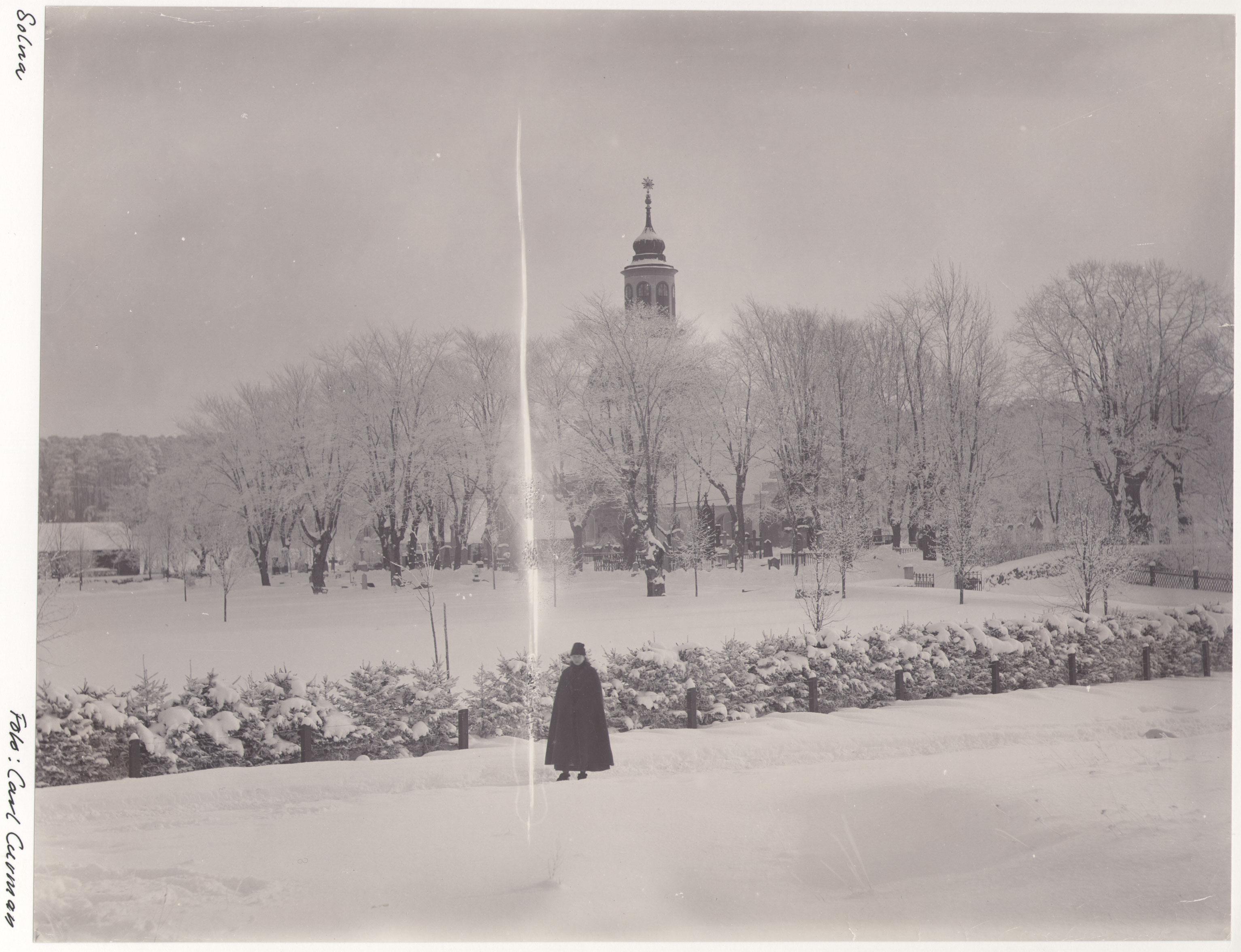 Vinterbild med kyrkan i bakgrunden.