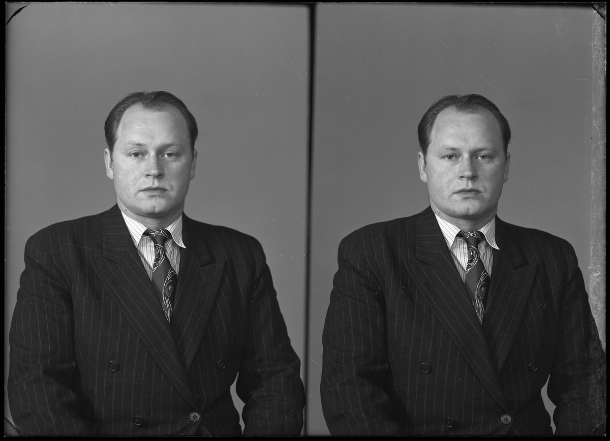 Porträtt, passfoto. Gösta Eriksson, Åskebro, Kolbäck.