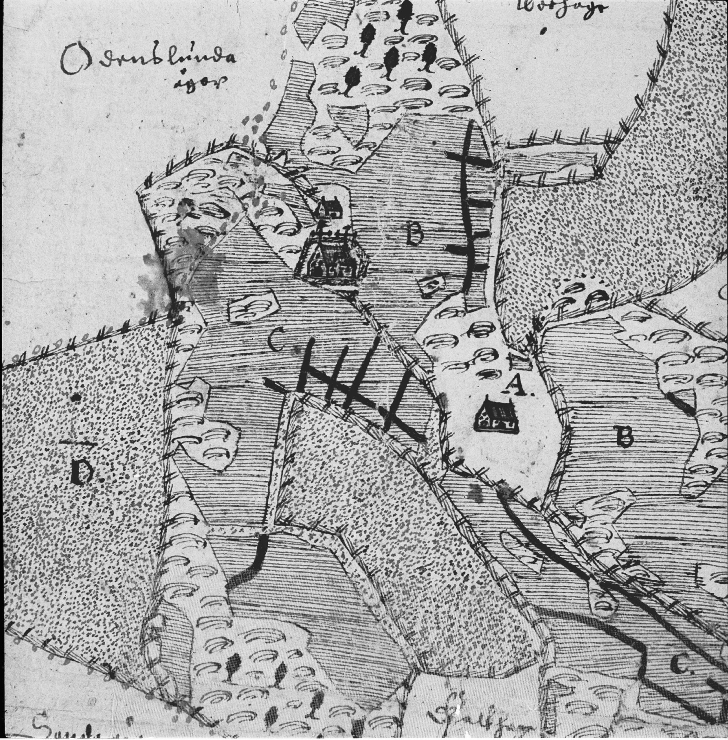 Karta över kyrkan och dess omgivning, ur Lantmäteristyrelsens arkiv.