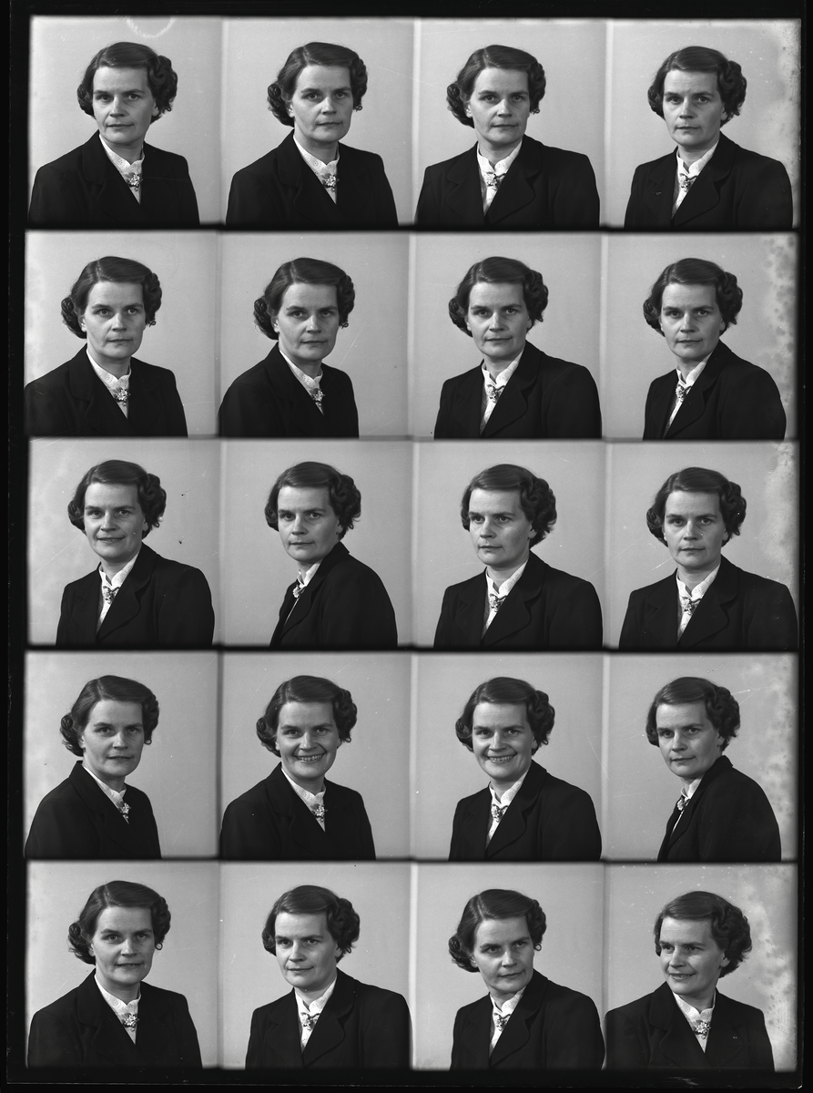 Kvinnoporträtt, polyfoto. Fru Margit Pettersson, Kolbäck.