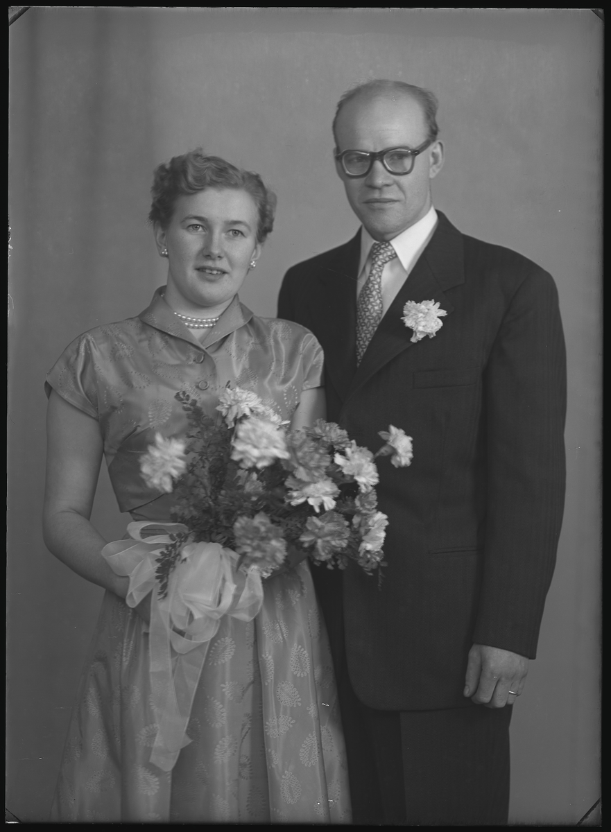 Brudpar. Hans Johansson. Yllesta, Kolbäck. Ur Gustaf Åhmans samling.