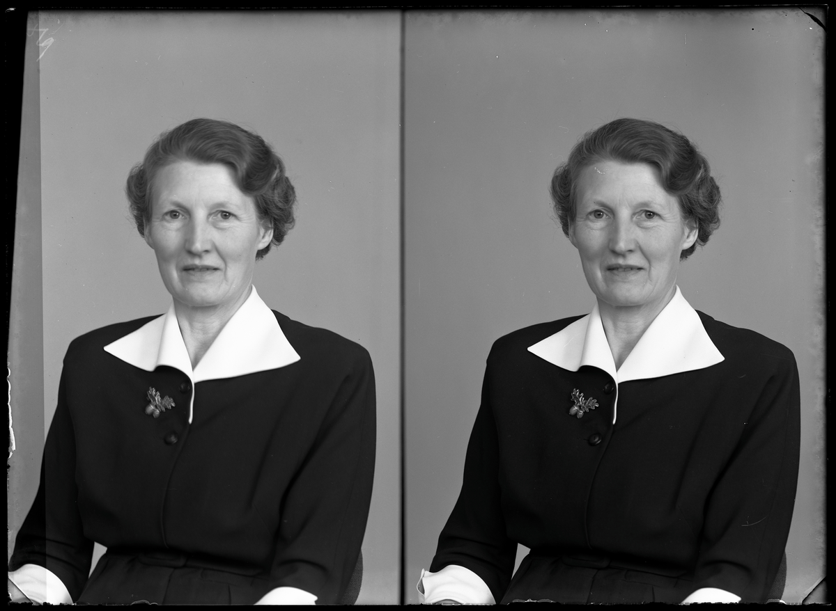 Kvinnoporträtt, pass, Helga Pettersson, Sofielund, Strömsholm.