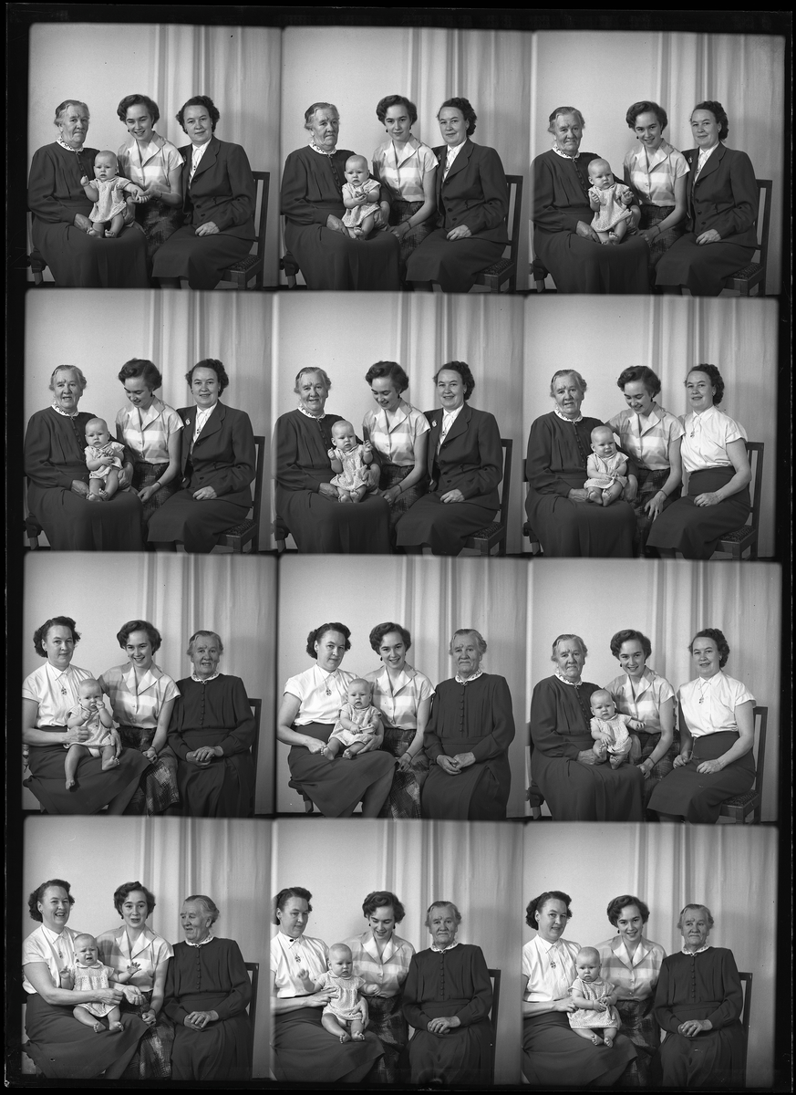 Grupporträtt, fyra personer. Fru Gullan Bäckström, Övernäs, Kolbäck.