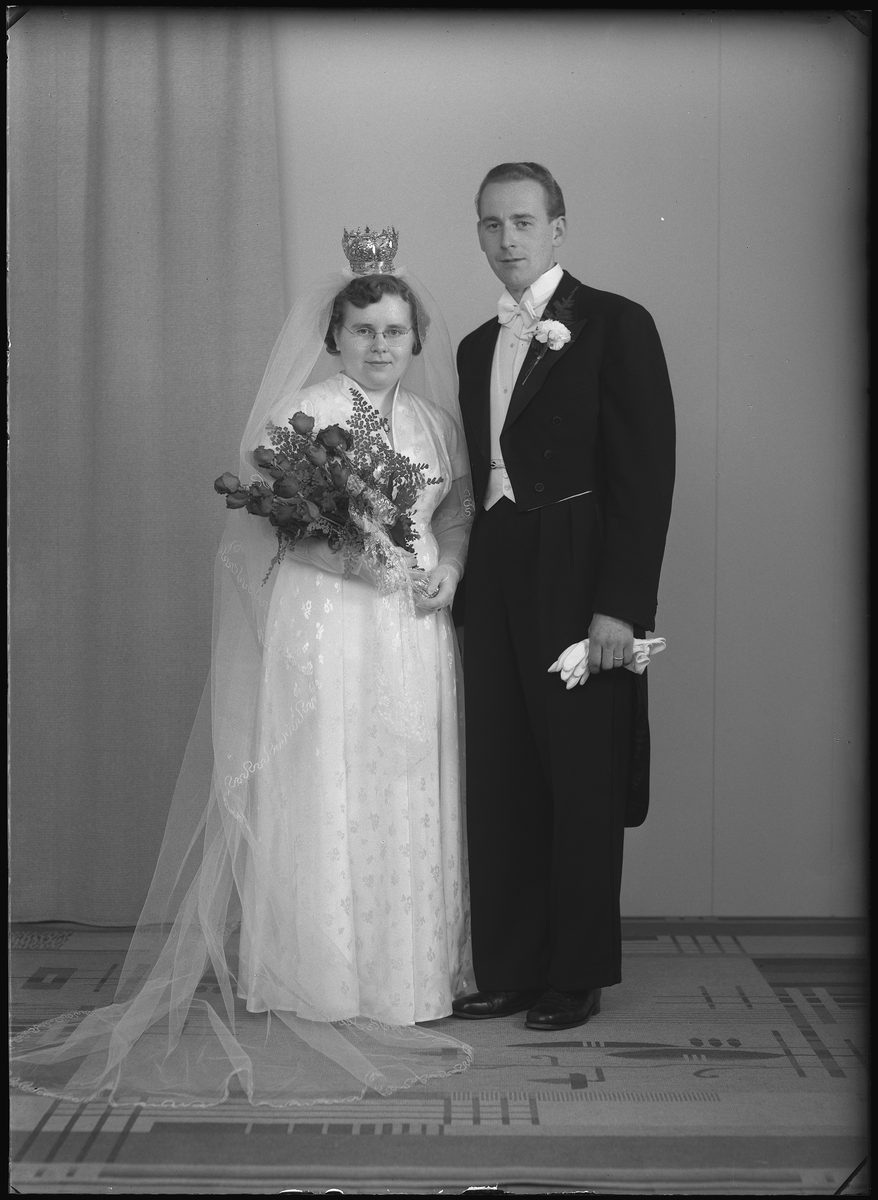 Grupporträtt, brudpar. Sven Eriksson, Surahammar.
