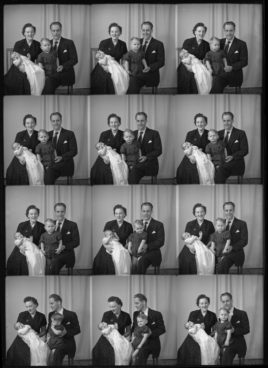 Grupporträtt, polyfoto. Nils Hjelm, Herrevad, Kolbäck.