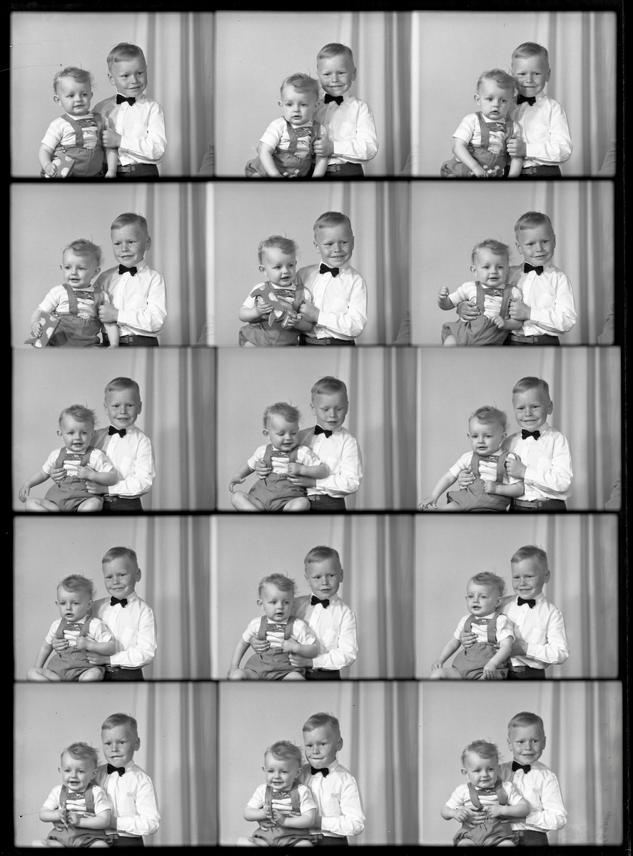 Grupporträtt, två barn, fru Vera Karlsson, Åskebro, Kolbäck, polyfoto.