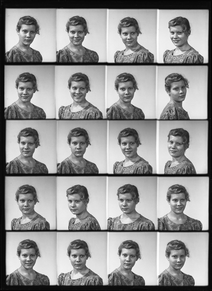 Kvinnoporträtt. Fröken Iris Karlsson, Bergslagsvägen 220, Hallstahammar.