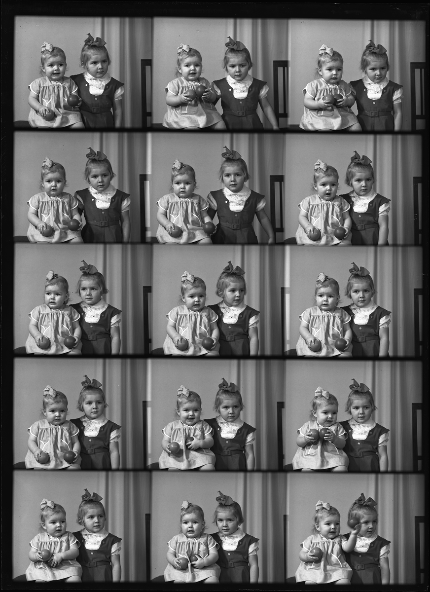 Grupporträtt, två barn. Fru Berta Zettergren, Lövboåsvägen 8, Hallstahammar.