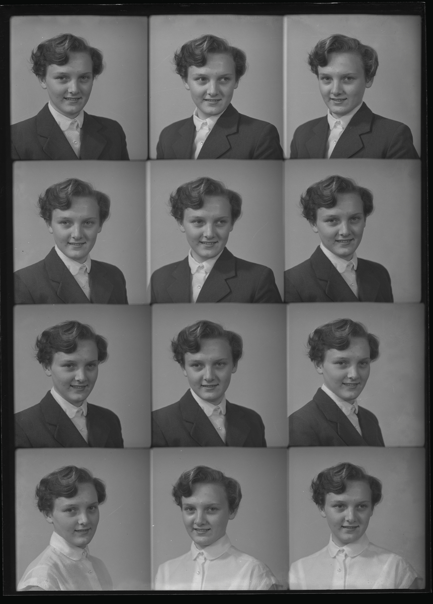 Porträtt, polyfoto. Fröken Monika Karlsson, Mölntorp, Kolbäck.
