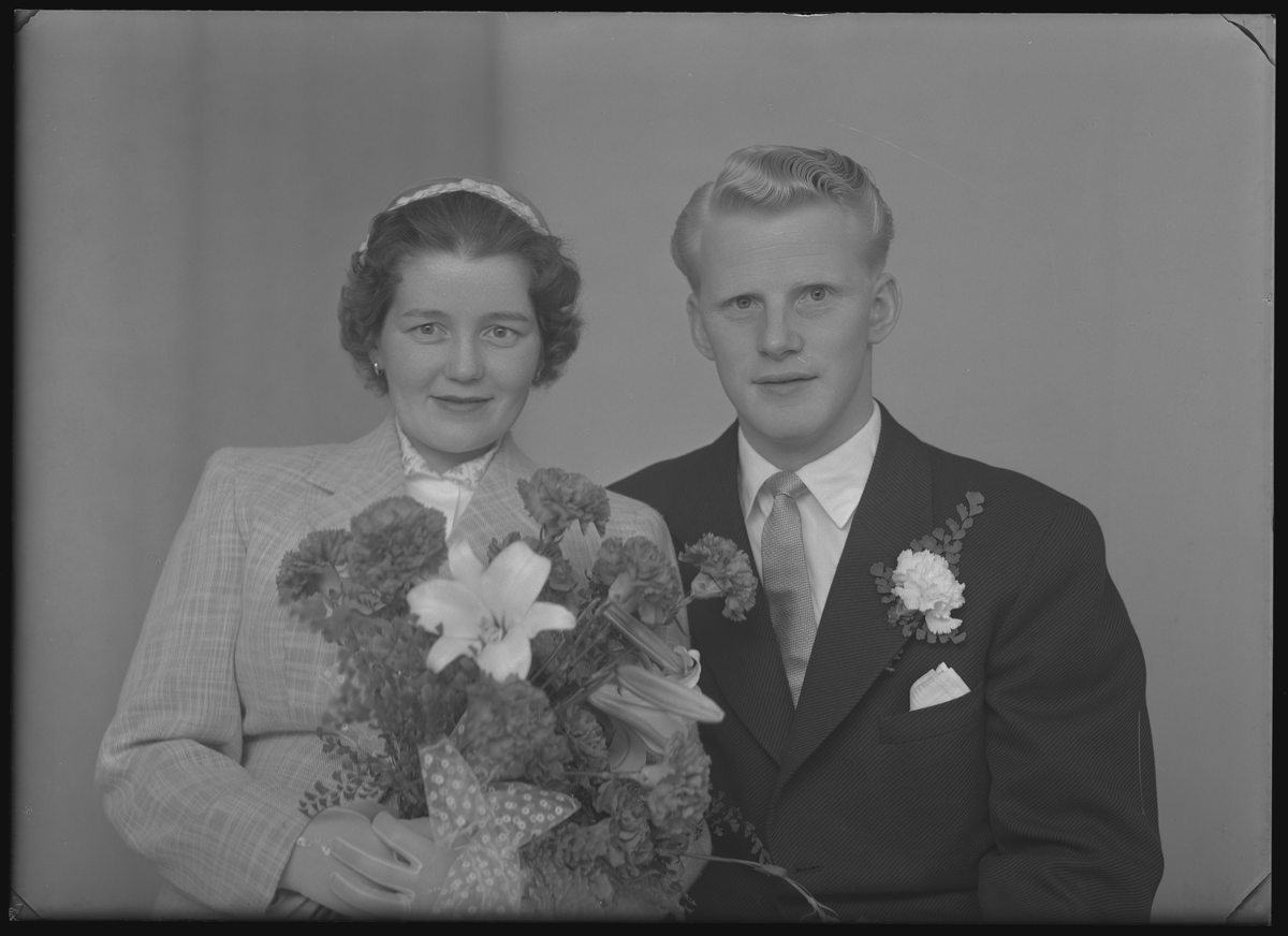 Brudpar. Sune Andersson, Karlslund, Lustigkulla, Hallstahammar. Ur Gustaf Åhmans samling.