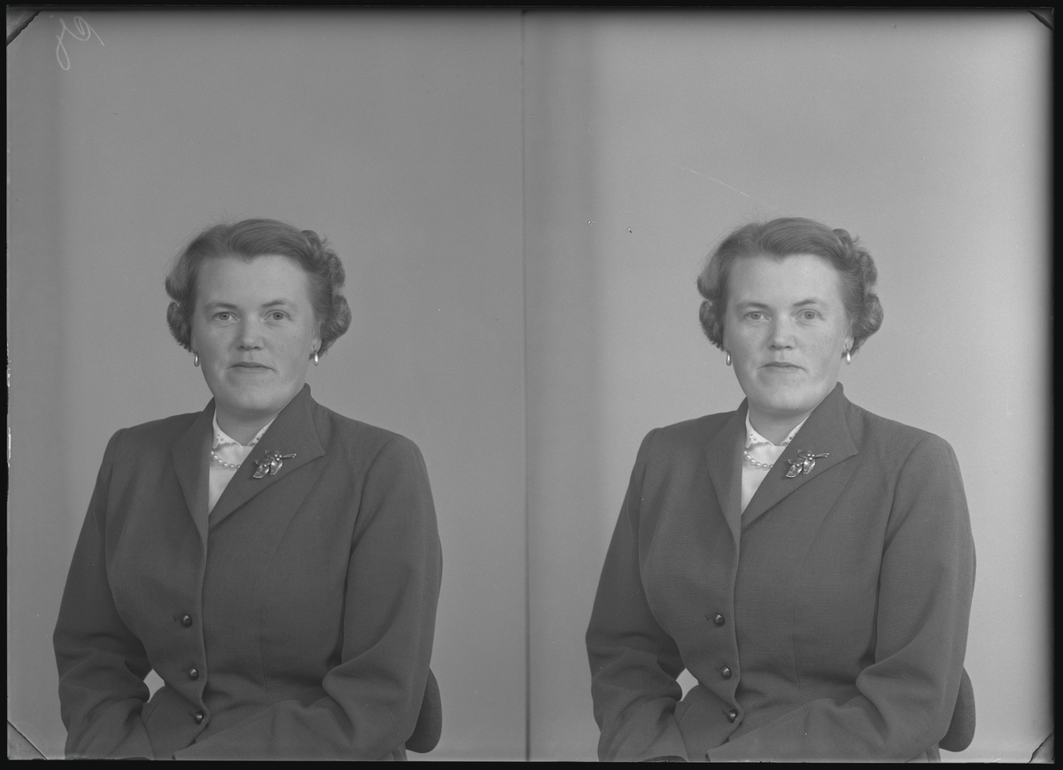Porträtt-körfoto. Fru Barbro Eriksson, Herrevad Kolbäck. Ur Gustaf Åhmans samling.