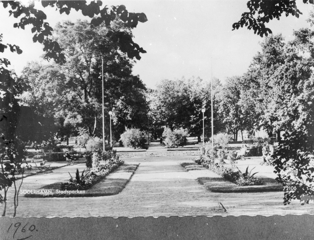 Vykort från Söderhamn. Stadsparken omkring år 1960.