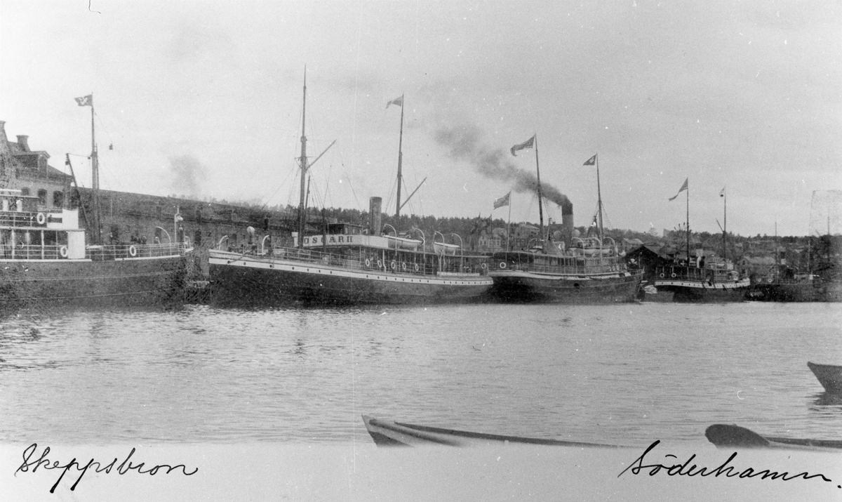 Vykort över Inre hamnen i Söderhamn. Foto omkring år 1900.