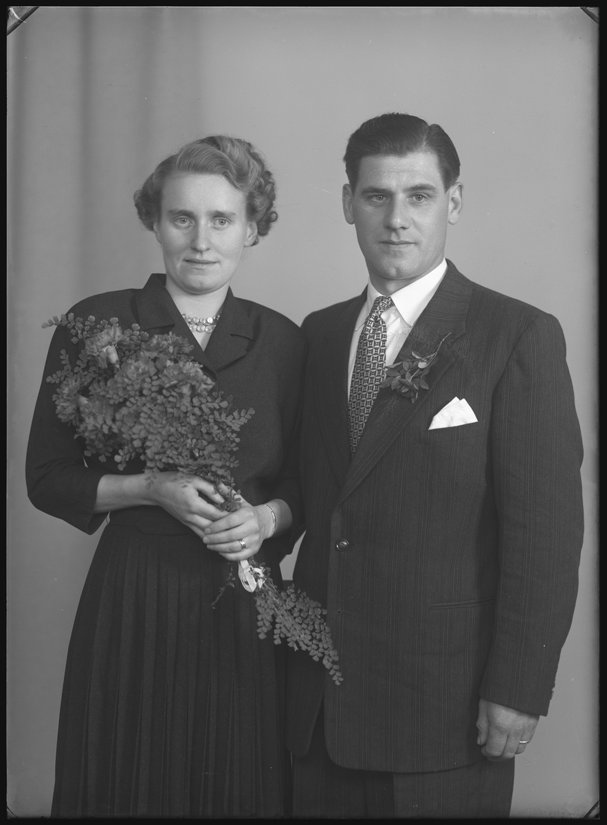 Brudpar. Ellert Jansson. Eldslund, Kolbäck. Ur Gustaf Åhmans samling.