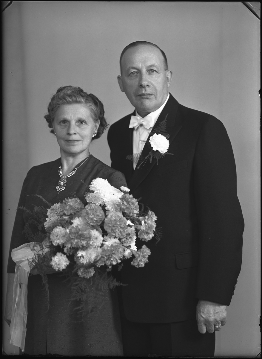 Grupporträtt, brudpar. Gunnar Johansson, Sörstafors.