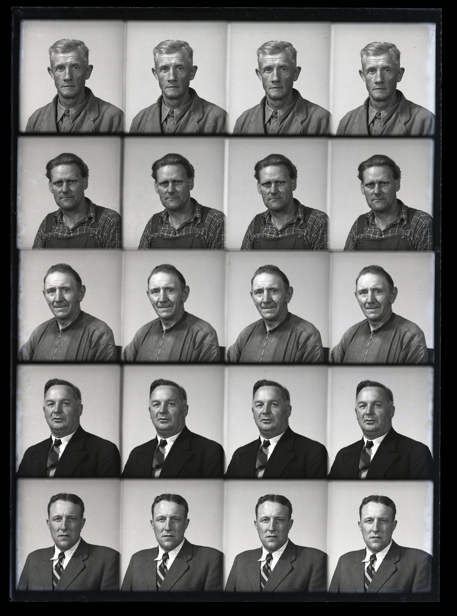 Mansporträtt, fem olika, Bertil Ekdahl, Strandhen, Ramnes. Arthur Hedström, C.Sjögren, Gösta Norr, Knutsson ?, Vägforvaltningen.
