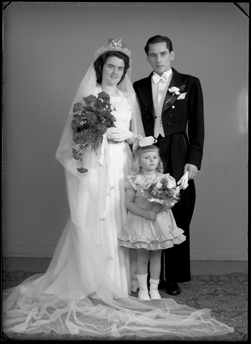 Grupporträtt, brudpar och brudnäbb. Ragnar Skanzer, Skansgatan 3, Hallstahammar.