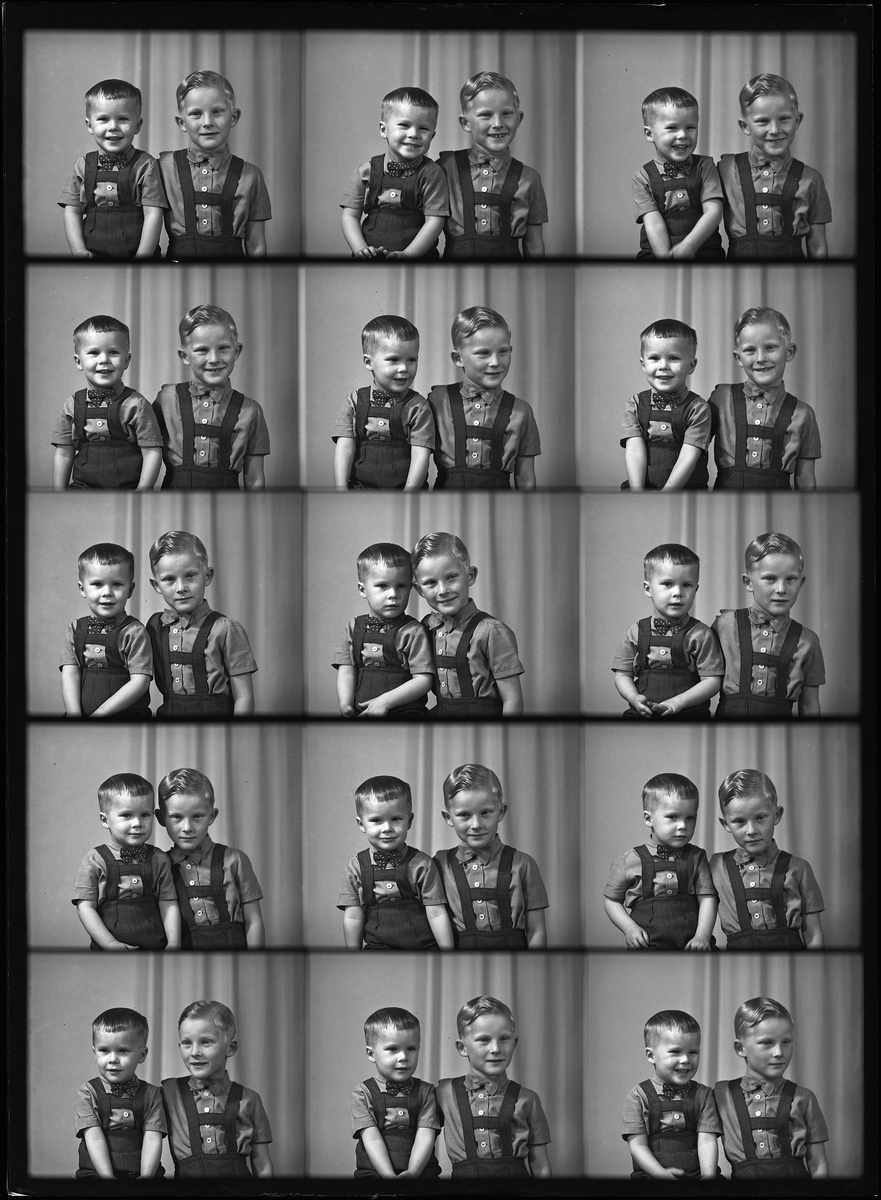 Titel: Barngrupporträtt, Börje och Bertil. Olsson, Gla Prästgården, Kolbäck. Ur Gustaf Åhmans samling.