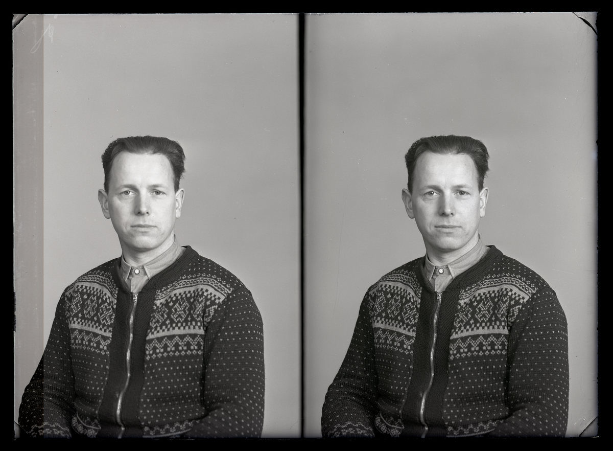 Mansporträtt, körfoto och pass, Evert Larsson (Lunds villa), Kolbäck.
