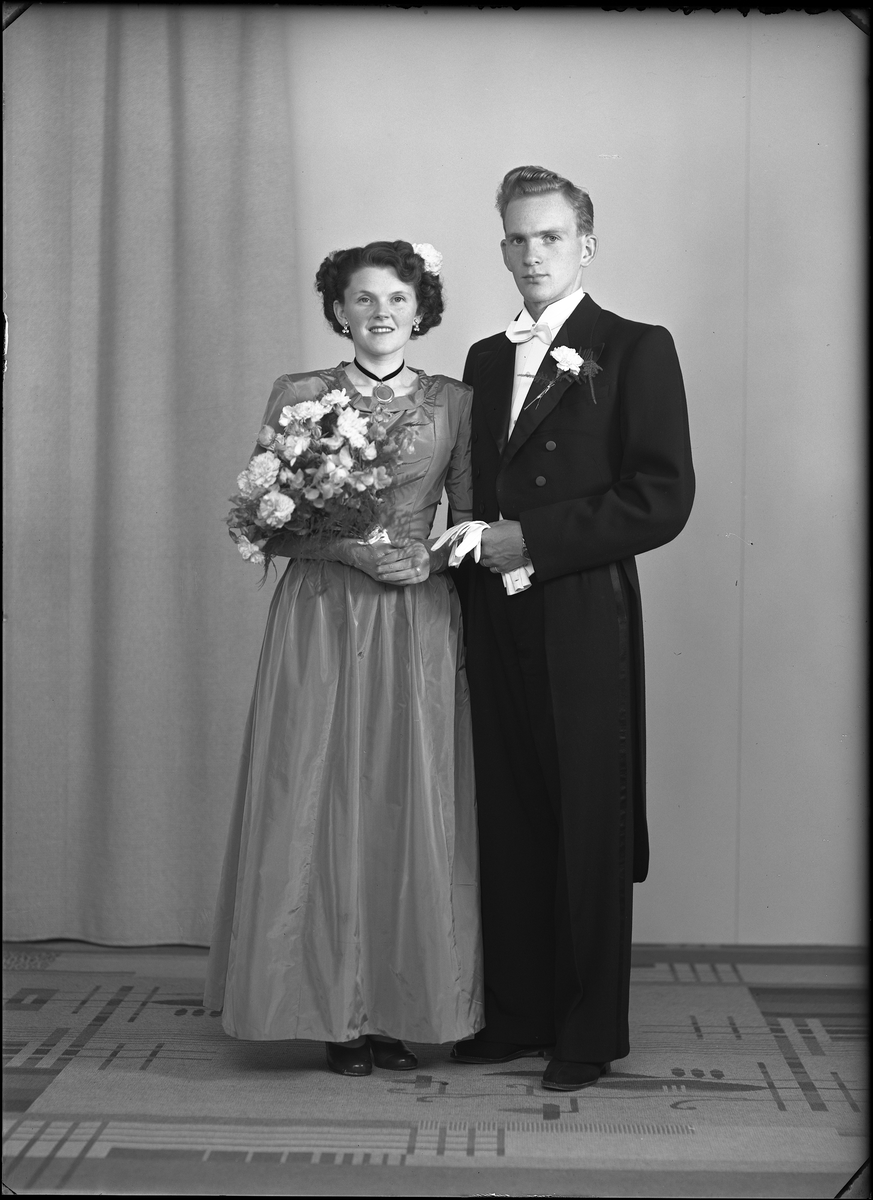 Grupporträtt, brudpar. Rolf Larsson, Kapellgatan 14 A, Hallstahammar.