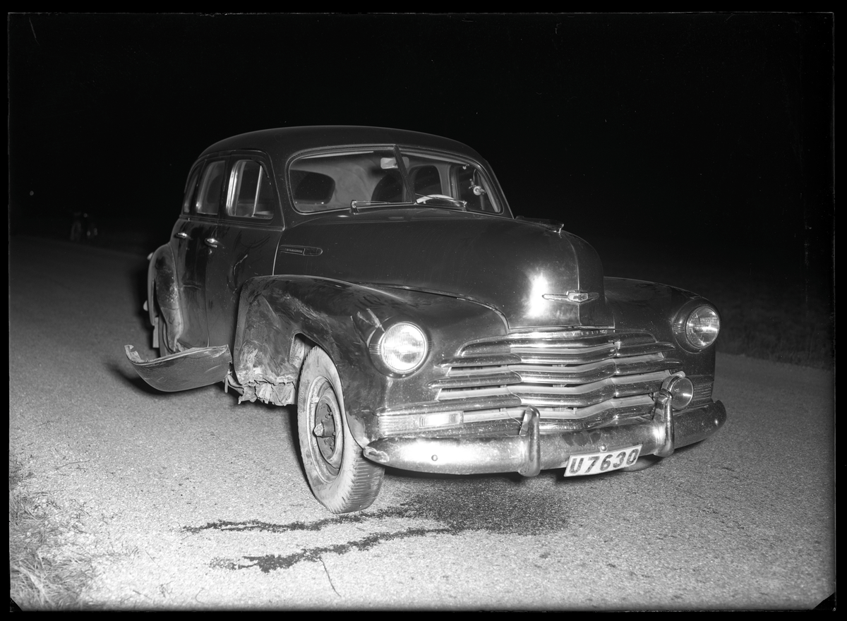 Titel: Krock med två bilar och cykel, norr om Sörstafors. 4 november 1951. Landsfiskalen i Kolbäcks distrikt, Hallstahammar. Ur Gustaf Åhmans samling.